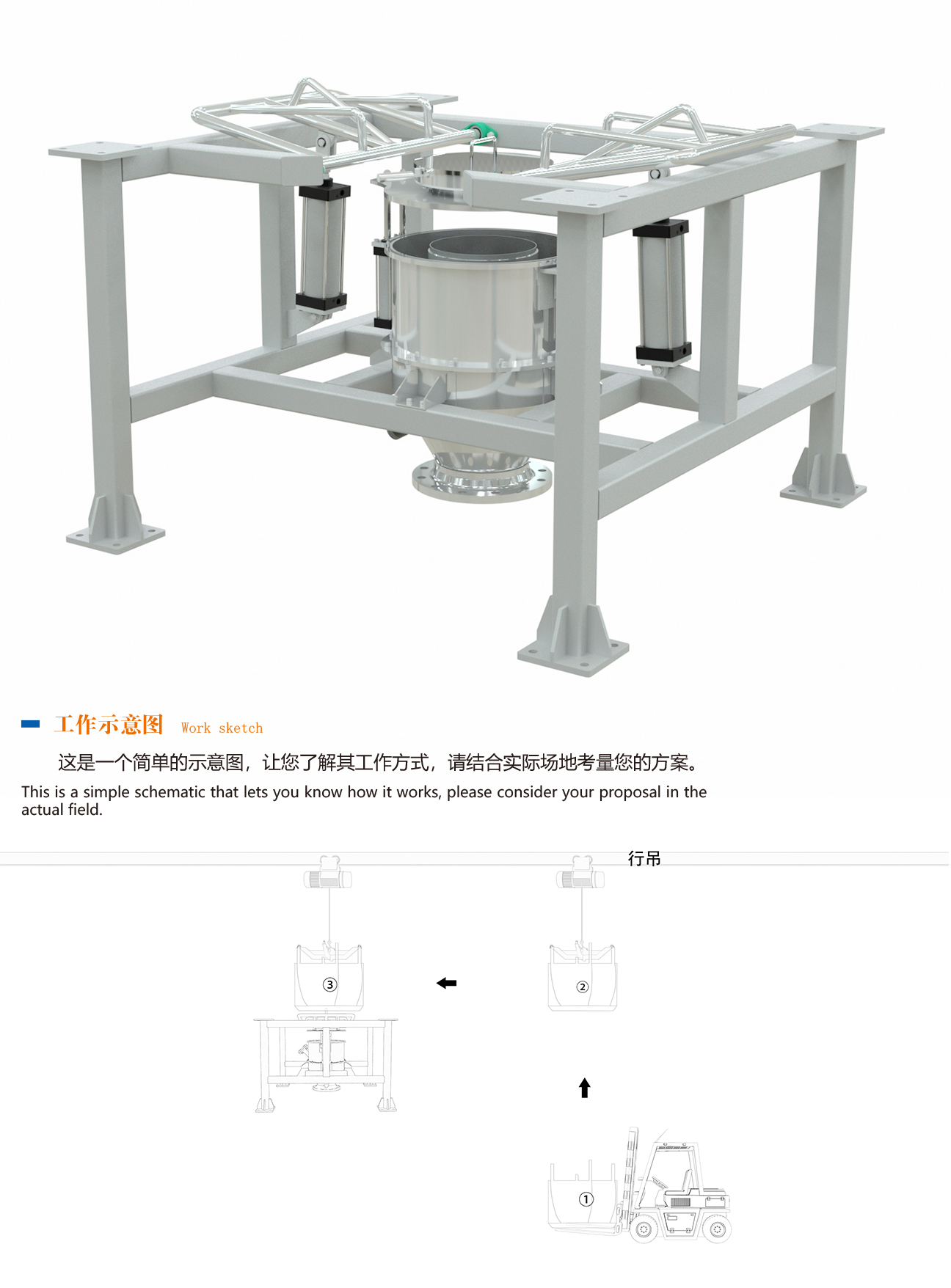 2、電動葫蘆;(也可用客戶自有的行車、叉車等起重設備)