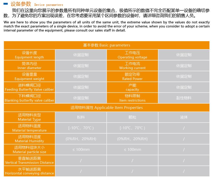 與上下游設備連接的口徑、產能、刀片間距、長寬高、材質等