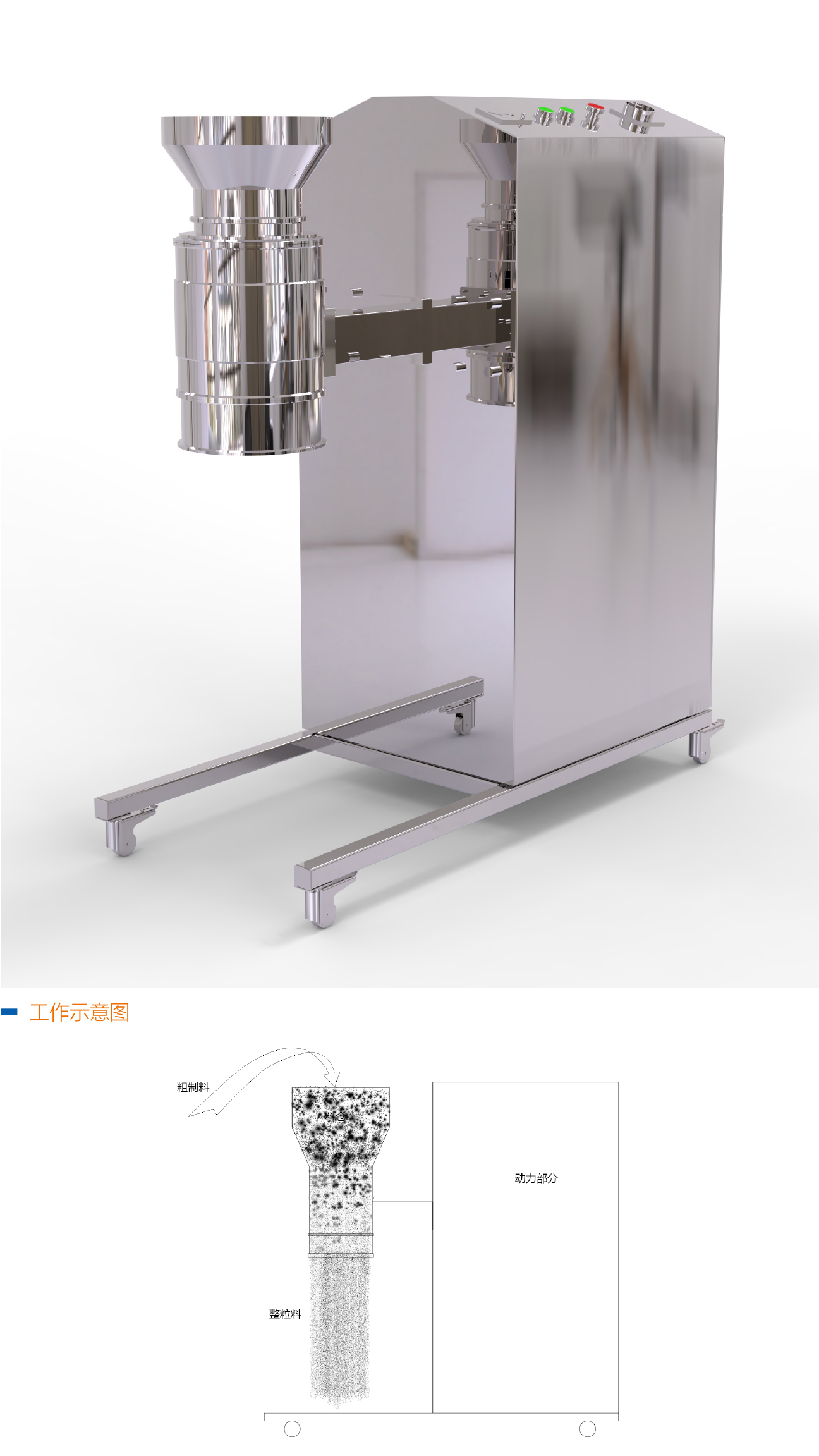 此設(shè)備用于改善物料的狀態(tài),一是將大小不一的顆粒加工成大小相當?shù)男☆w粒,二是將較大濕度的散料加工成大小相當?shù)男×A希梢酝ㄟ^更換不同孔徑的篩網(wǎng),調(diào)整整粒后物料的顆粒大小,在醫(yī)藥、食品、化工、鋰電等行業(yè)使用較多,主要用于高剪切制粒機濕法制粒后濕整粒、流化床干燥器干燥后的干整粒、干法制粒產(chǎn)品整粒、混合后物料粉碎到目標小尺寸。