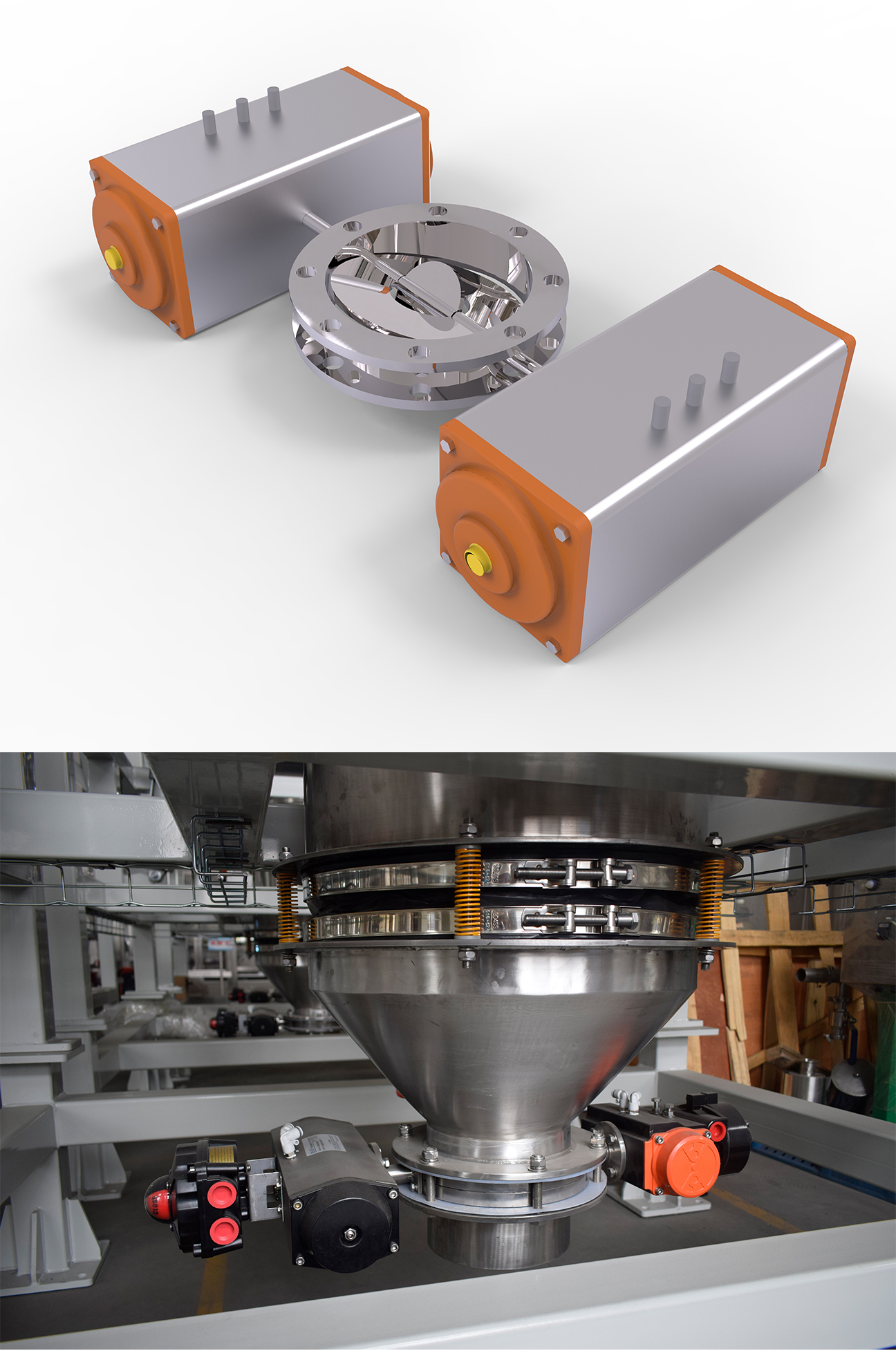 在需要大量給料時,開啟蝶閥閥片,可以大量給料。兩組閥片不互相干預,可同時動作。