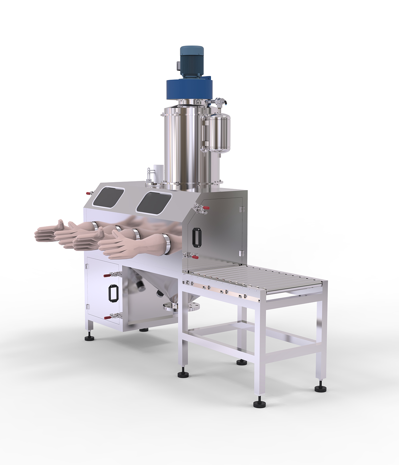 針對(duì)堆積密度比較小,易產(chǎn)生粉塵飛揚(yáng)、對(duì)人體和環(huán)境有毒有害的粉體,采用手套箱卸料系統(tǒng)是最佳的選擇。并且可直接通過(guò)密閉式開(kāi)袋站底部的輸送管道與輸送設(shè)備進(jìn)行連接,將物料有效輸出到指定位置。主要應(yīng)用于化工、醫(yī)藥等高價(jià)值物料生產(chǎn)領(lǐng)域。